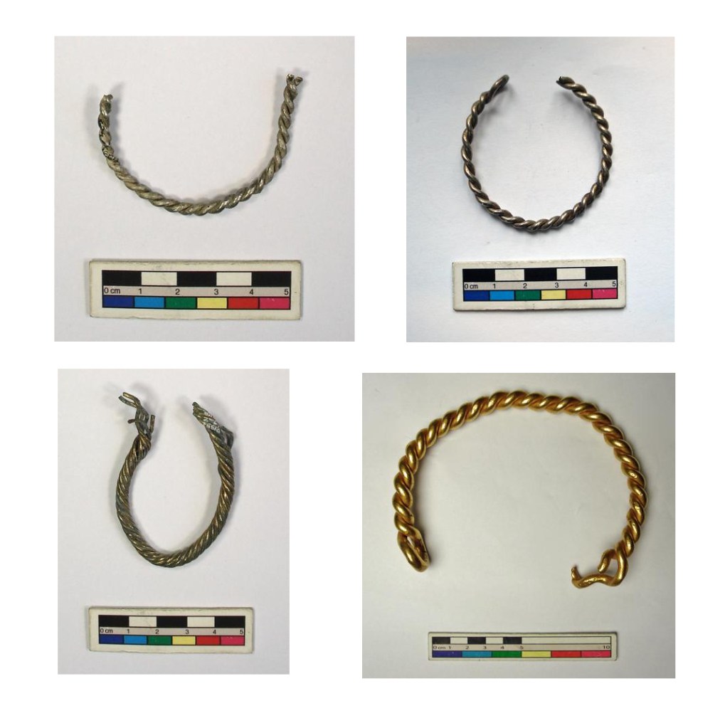 It has been previously assumed that torc neck rings of whatever type break at the back through wear: the back of the torc being the area most under pressure during the opening and closing when a torc is put on and taken off (Farley 2016; Joy 2019, 466). Although this could be conceivable in the case of rigid bar torcs (for example, NWHCM: 1994.106; BM 1991,0702.52) which have little flexibility, there are numerous examples of two-bar torcs where the neck ring is entire and not deformed (for example, NWHCM: 1942.126; BM 1951, 0402.1; BM 1991,0407.24; BM 1991,0407.1; BM 1991,0407.20; BM 1991,0407.21; BM 1991,0407.5).