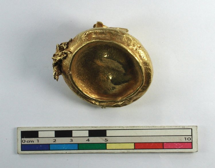 Discussions with metalsmiths have suggested that the fusing could be the result of an aborted melt, either because a crucible fractured, or there was a problem with the heating source. The metal droplets and splatters can be similarly explained, or may even be the result of a failed casting, carried out close to the metal from the hoard. If a clay mould is insufficiently dry prior to use, or if a wax model is insufficiently burnt out, when molten metal is poured into the mould an explosion of molten metal droplets is violently expelled from the mould aperture and will deposit over anything in close proximity. Having personally witnessed this during a bronze casting, the authors can vouch for the similarity of this to droplets seen on the Hoard F material, and on the Hoard L torcs BM 1991,0407.33 and BM 1991, 0407.38.