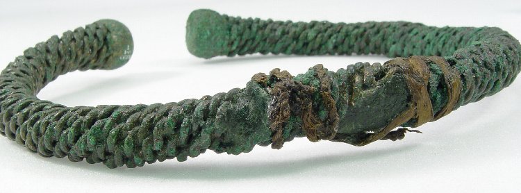 The looseness of the wound wire is also another hint that the person repairing the torc lacked metalworking knowledge: if the wires had been annealed (heated to a high temperature and then cooled), they would have become malleable and could have been wound snugly around the broken torc. That they clearly were not annealed, and thus sprung free, again shows that the person carrying out this repair was not aware of, or did not have the facilities to carry out, annealing (Giovanna Fregni, pers. comm.).