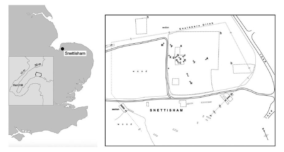 The site of Snettisham (Ken Hill) is best known in Iron Age studies as the find-spot of the largest number of Iron Age torcs in Europe. Ken Hill is located in north-west Norfolk, on a raised Carstone hill (120m OD), c.2km from the eastern shore of The Wash. The site is prominently visible from the sea (Clarke 1954, 32) and it is likely that the sea was closer to Ken Hill in prehistoric times.