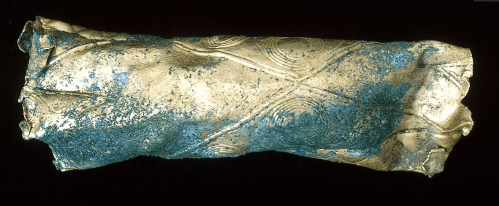 As such, with the double tubular sheet form, symmetry, arm ring diameter and the paralleled semi-circular/triangular lines with punched dots, it does not seem unreasonable to suggest that the Snettisham arm ring is of a possible 4th century BC date.