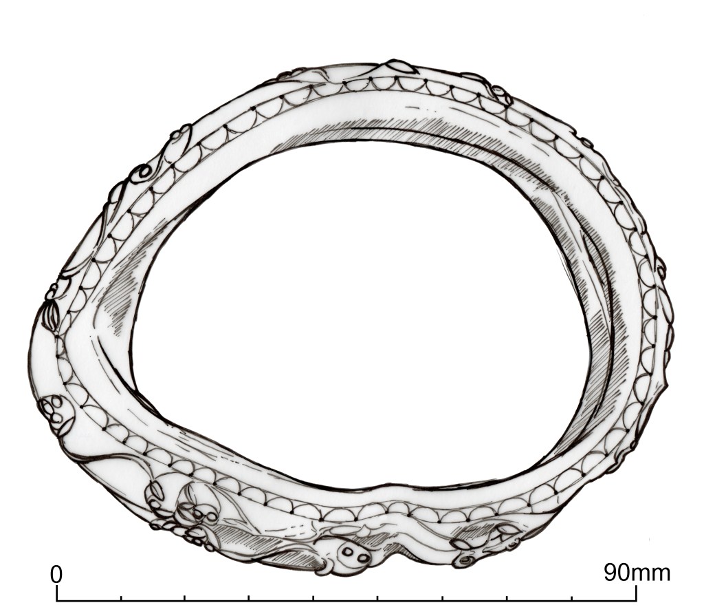 Figure 1: Sketch of the Snettisham arm ring (British Museum catalogue 1951,0402.4). (Image © Roland Williamson & Tess Machling).
