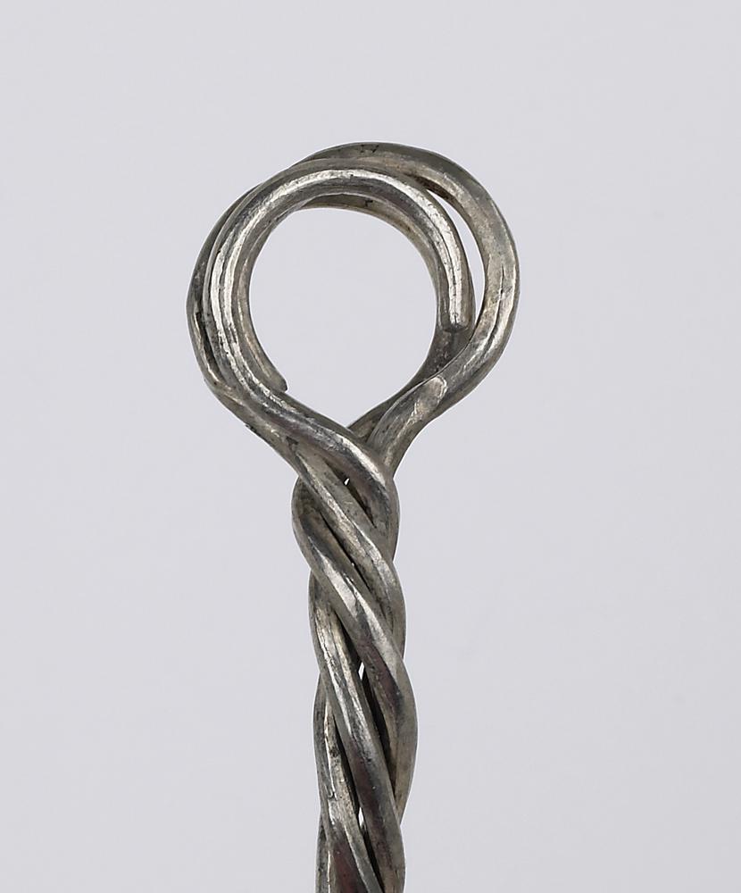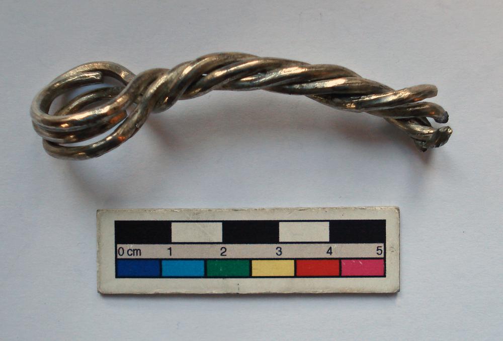 The unfortunate thing about this torc is that it is incomplete and so there is no way of knowing whether the other terminal was a double loop – which would prove the ‘M’/’W’ theory – or whether it was the same as the surviving terminal, which would then allow for the possibility that the wires of the torc neck ring were individual and twisted together, rather than a single, folded, wire which was then twisted. I’m still looking for other examples though, so perhaps there is a complete torc out there somewhere which will hold the answer.