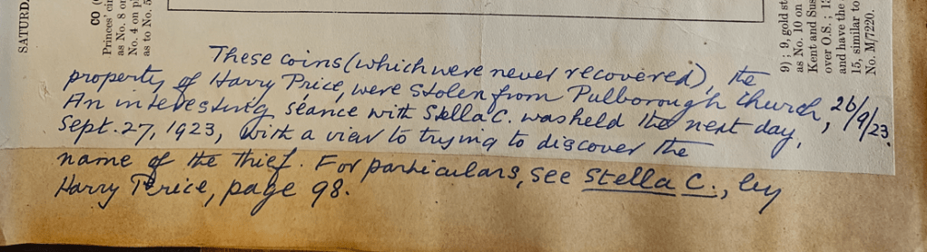 Stella Cranshaw was a very close associate of Price and one of his trusted mediums, and Eric Dingwall – an infamous ‘anthropologist’ – was also a close collaborator. With the séance featuring such close confidents as Cranshaw and Dingwall – and with a very typical ‘Harry style’ hint of what had been done – there is a possible clue how the theft was achieved, although this can probably never be proved.