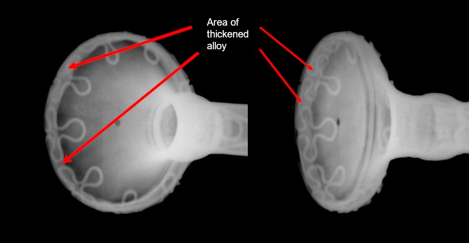The disc interpretation for the piece of material closing the terminal (Adams et al 2024, 5.3. The buffer terminal) is also contested and we would still suggest that the disc is in fact a ‘bottle top’ shaped cap: the x-rays within the Adams et al paper apparently show a circumference band of thicker alloy within the torc terminal (Fig. 4) which is not explained within their text and which would support the closing cap interpretation, the side of the cap causing a double layer of alloy thickness around the inner circumference of the ‘trumpet’ end.