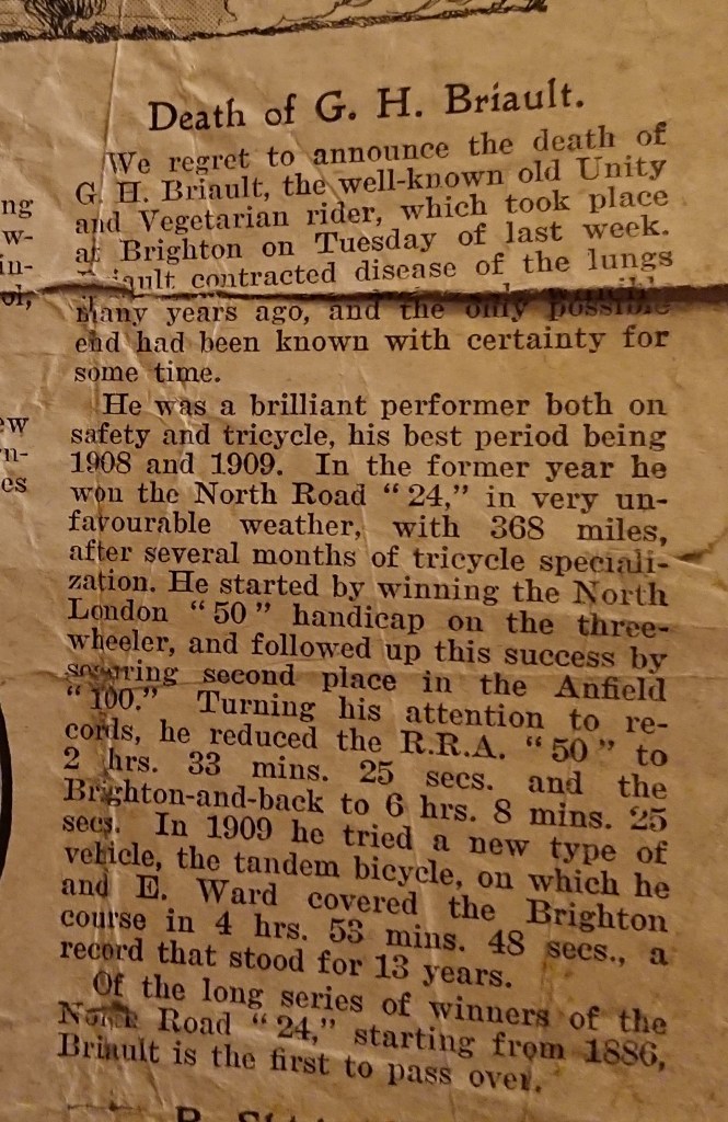 As well as being a goldsmith, George Herbert was also a champion cyclist, and the holder of numerous world records in the 1900s, often cycling from London to Brighton and back at speeds that almost all would find daunting, even in modern times! To do it in tweed, on an old style bike, and on uneven roads was even more impressive. He was also noted as being a vegetarian, riding for the Vegetarian Cycling club, an organisation which still exists to this day. [I often think that he would be delighted to know that his granddaughter, great granddaughter and great, great granddaughter are also veggies!]