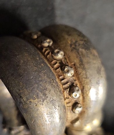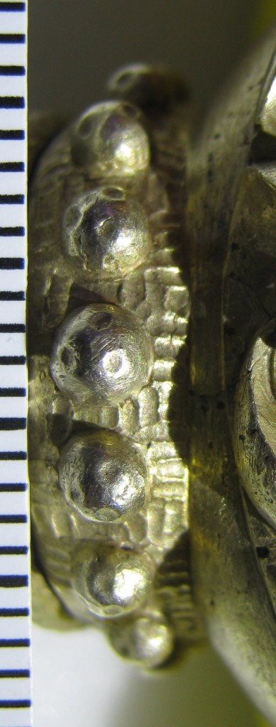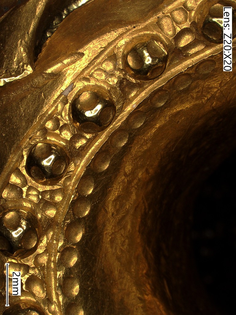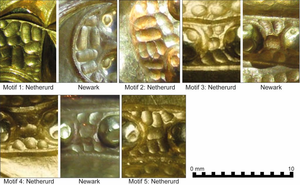 Although the dummy rivets look similar to those on other torcs, there is something about the H7 dummy rivets that speak of Netherurd and Newark and not Sedgeford, the Snettisham Great torc, or other torcs. Unlike the dummy rivets on the Sedgeford torc, the H7 dummy rivets are smaller, less globular, and with deeper punching (Fig. 9), and match those from both Newark and Netherurd more closely.