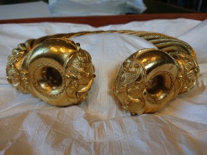 - Sheet gold terminals, manufactured separately using the ‘torus and core’ construction technique, before having an added collar and then attached to the neck ring: these torcs include: The Grotesque torc, Great torc, Netherurd terminal and Near Stowmarket torc (… and the apparently reworked Clevedon torc).